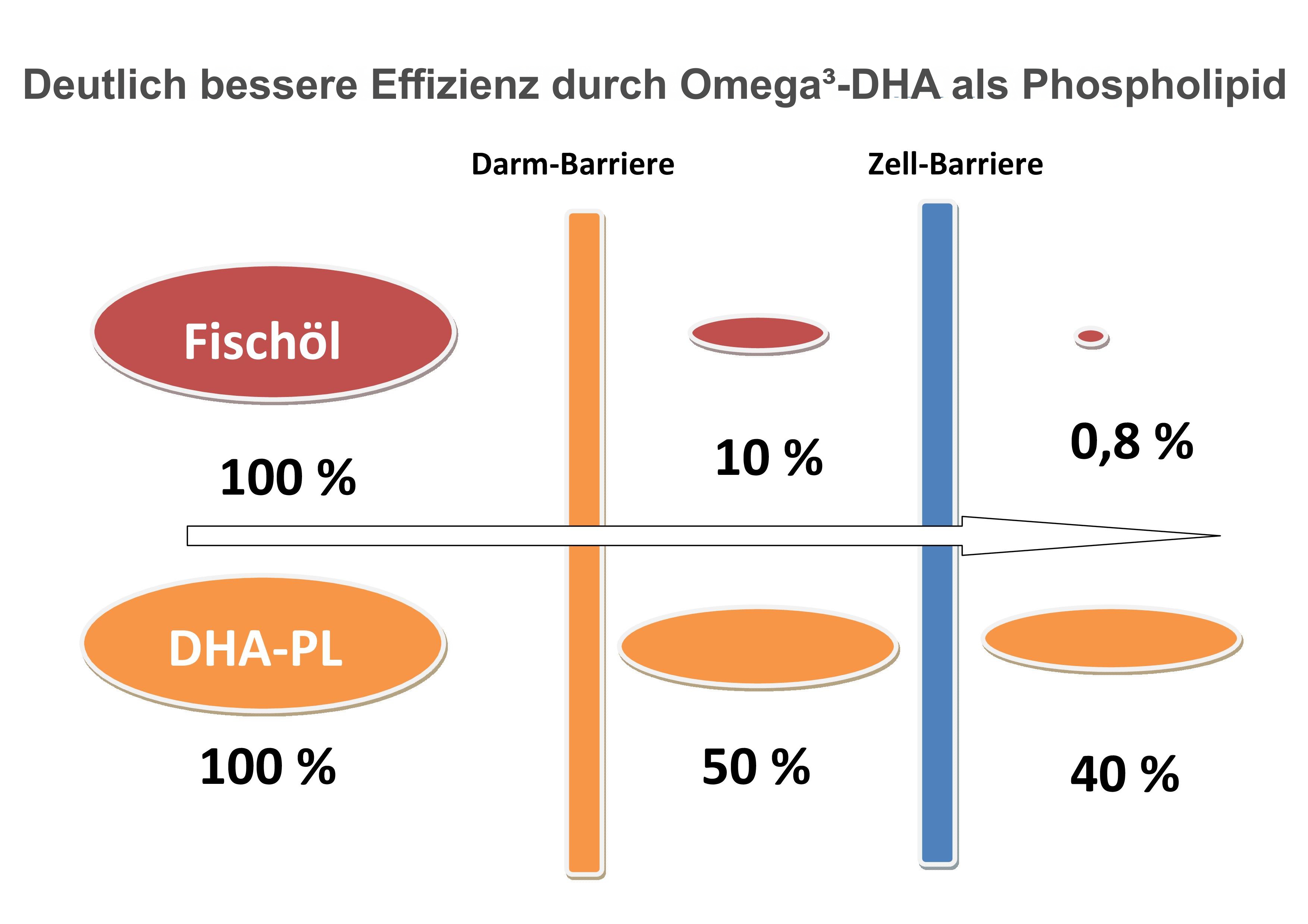 Die inzwischen schon bekannten Fischöle liefern zwar Omega3, aber nur mit einem geringen Anteil an DHA und diesen nicht in der notwendigen Phospholipid-Form. Daher benötigt man große Mengen davon, um vorhandene Defizite auszugleichen.