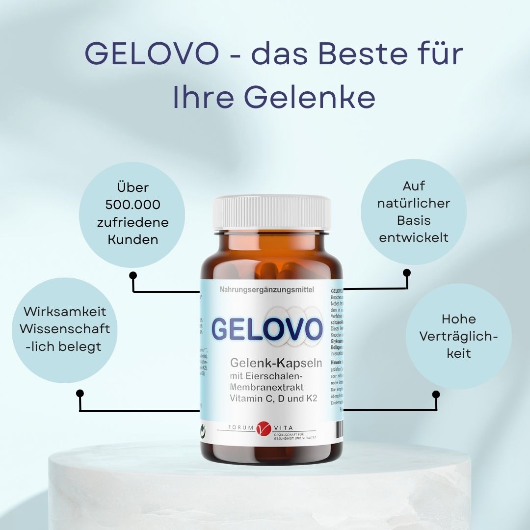 Die GELOVO Gelenk-Kapseln bietet ein einzigartiges Nährstoffspektrum für Knochen und Gelenke.